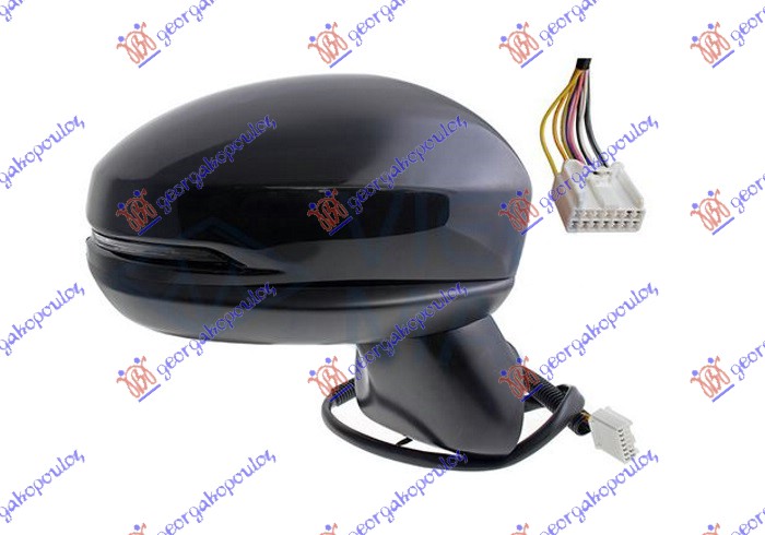 DOOR MIRROR ELECTRIC HEATED FOLDABLE PRIMED (W/LAMP) (9PIN) (A QUALITY) (CONVEX GLASS)