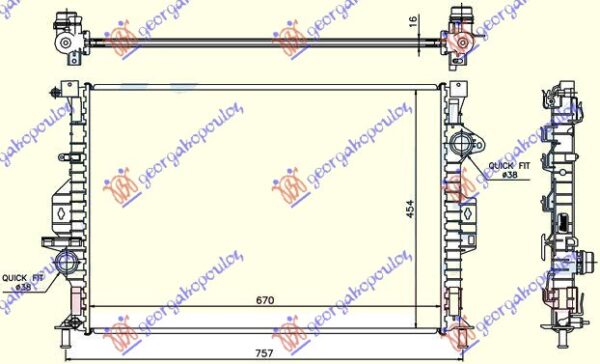 RADIATOR 1.6/2.0 EcoBoost 2.0 16v PETROL - 1.6/1.8/2.0/2.2 TDCi DIESEL MANUAL (670x454x16)